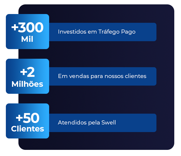 A Swell é uma consultoria de marketing especializada em aumentar as vendas de empresas e profissionais do setor imobiliário. Utilizamos um método eficaz, explorando plataformas de anúncio essenciais e implementando um sistema de vendas robusto que suporta todas as suas necessidades.